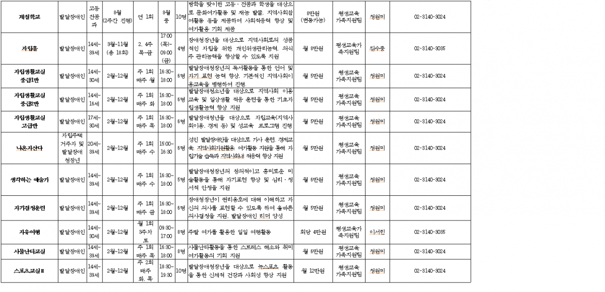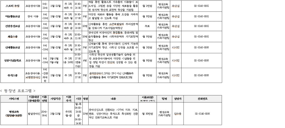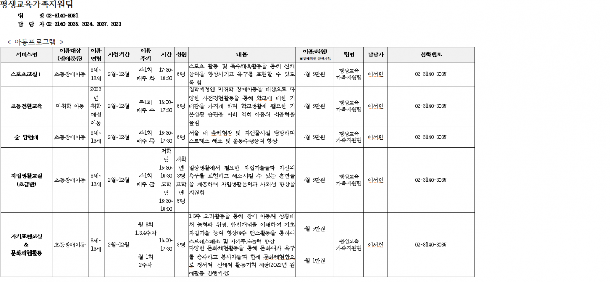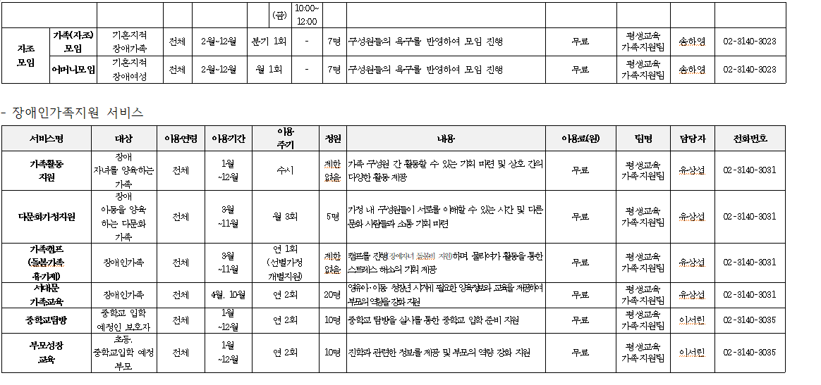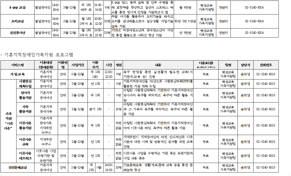2023년 서대문장애인종합복지관 복지관 프로그램 이용안내(평생교육가족지원팀)